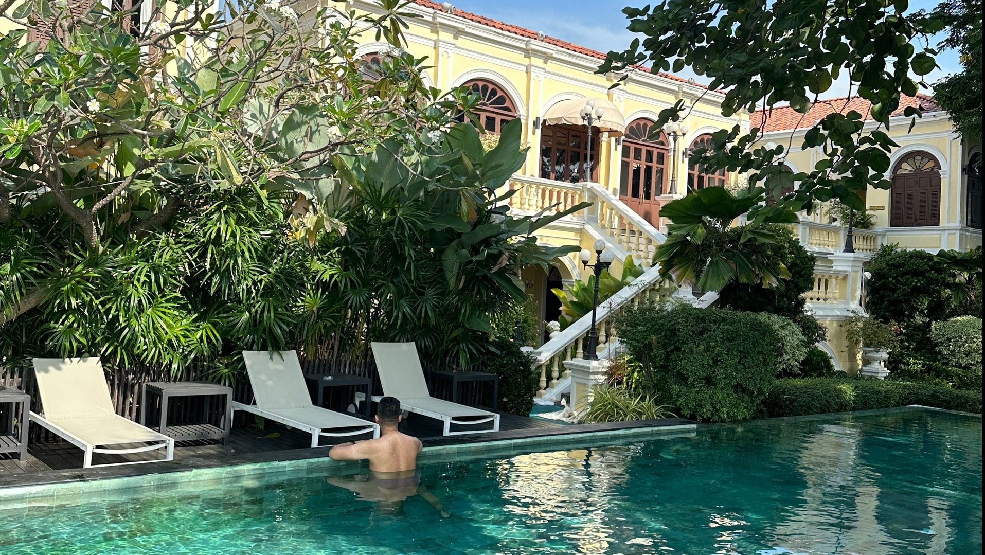 As our private boat cuts through the waters of the Chao Phraya River at dusk, the mansion's butter-yellow façade emerges like a scene from Lake Como transported to Southeast Asia.