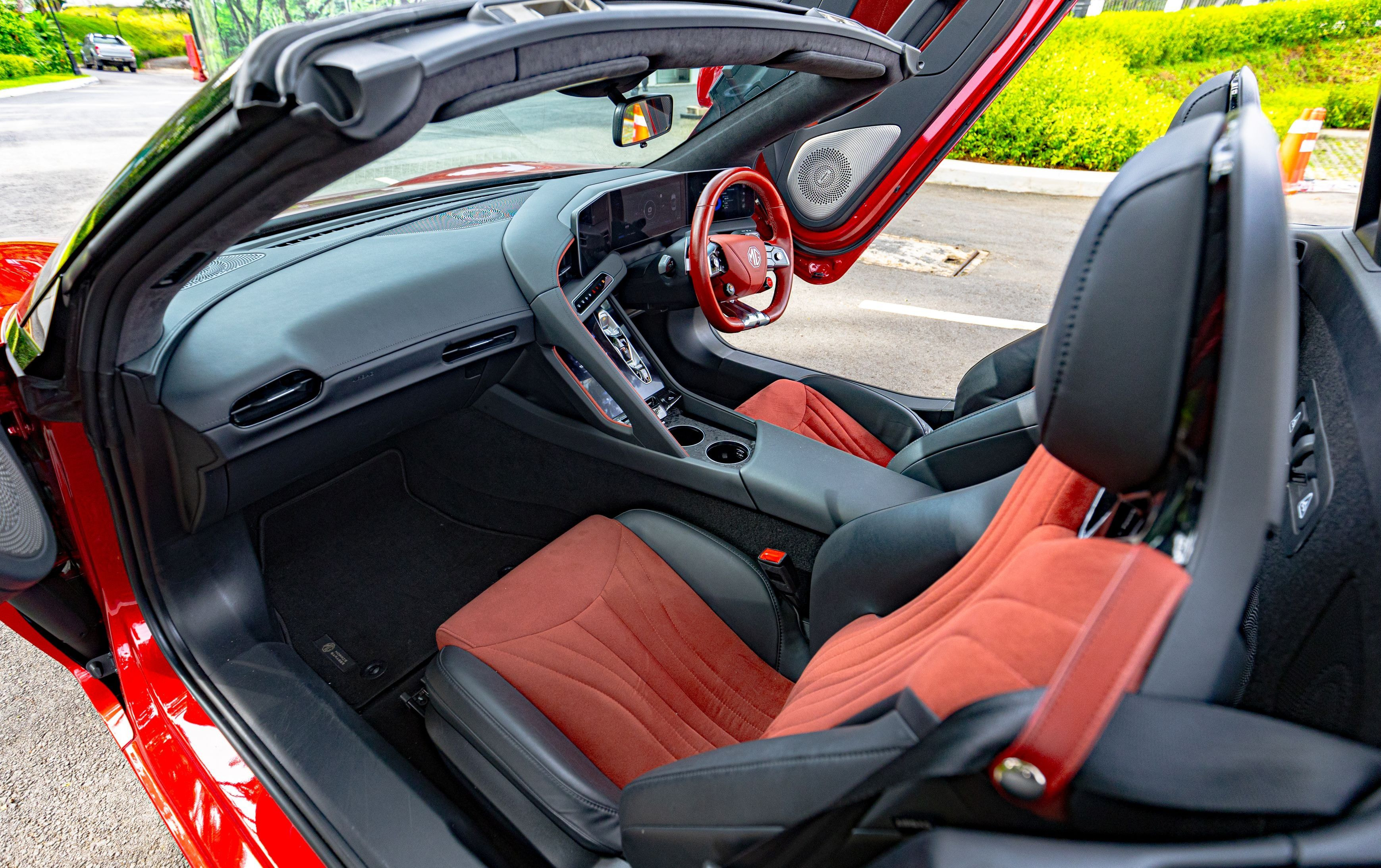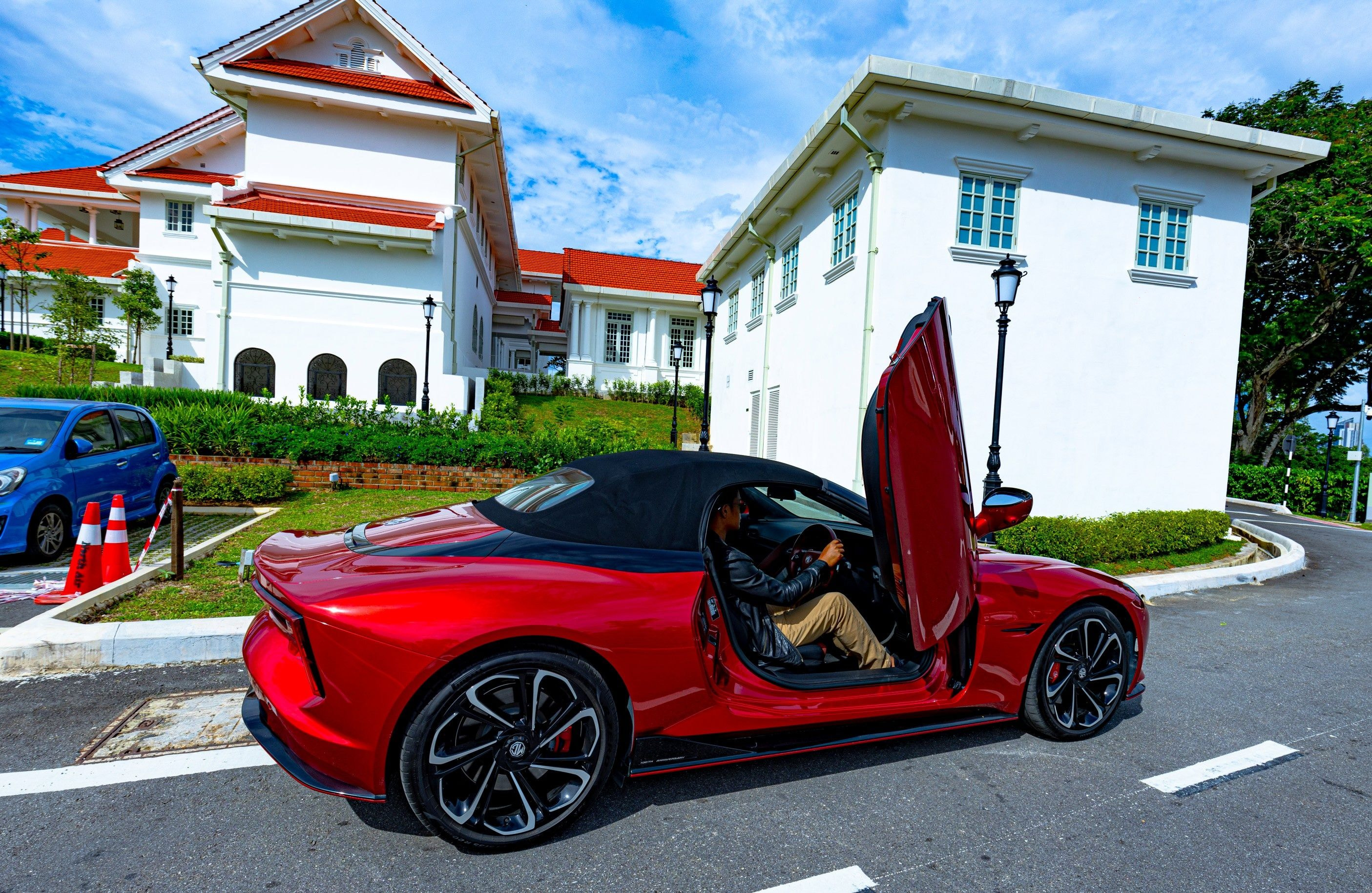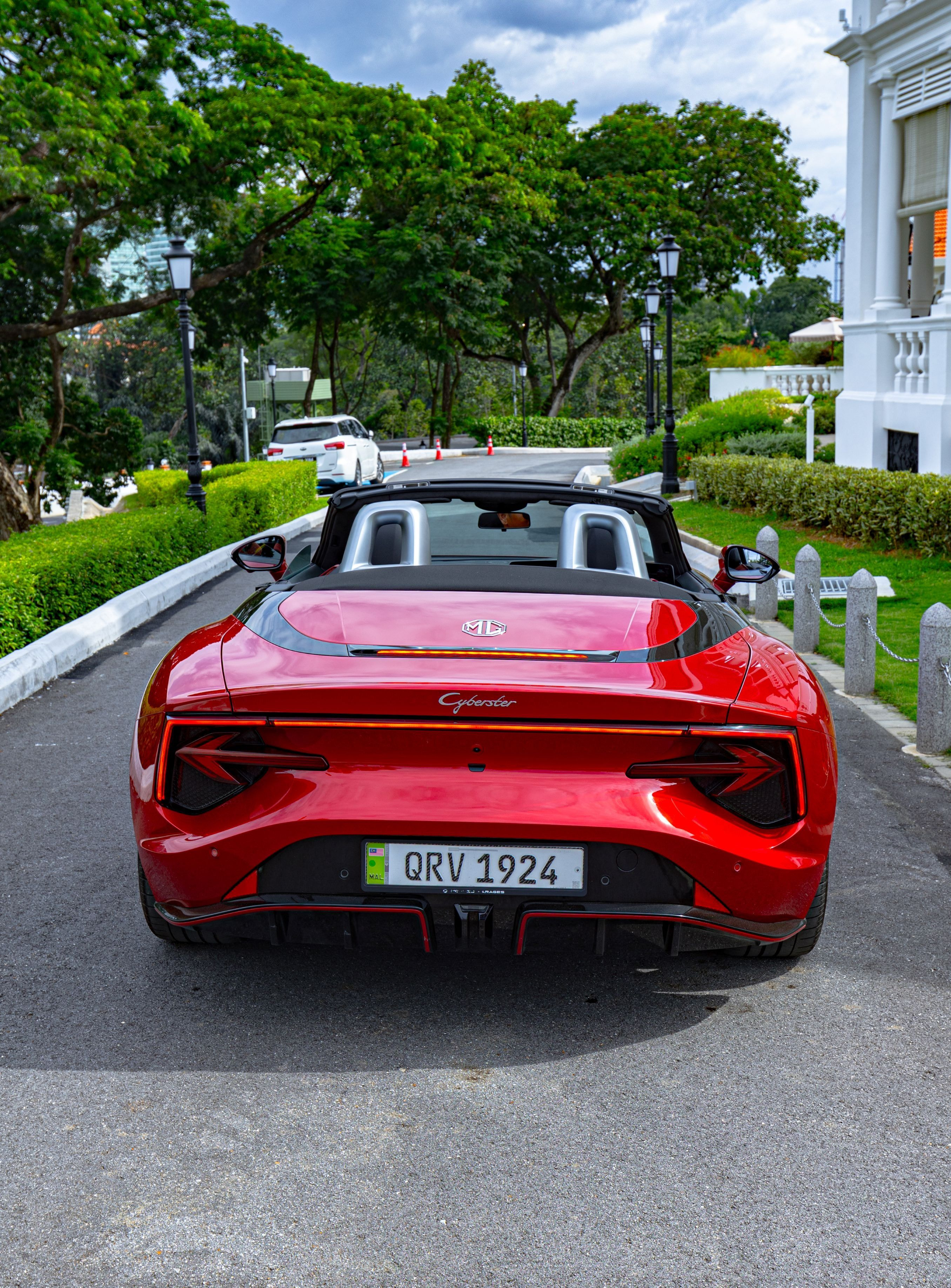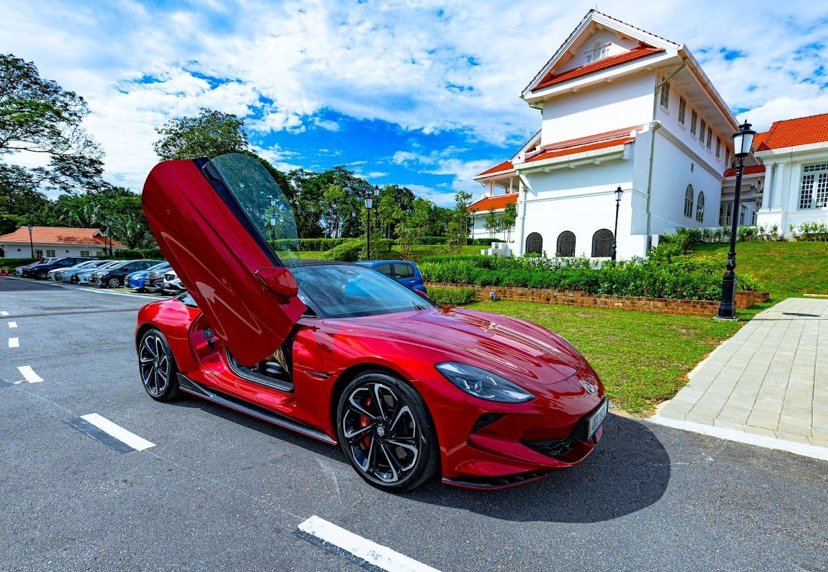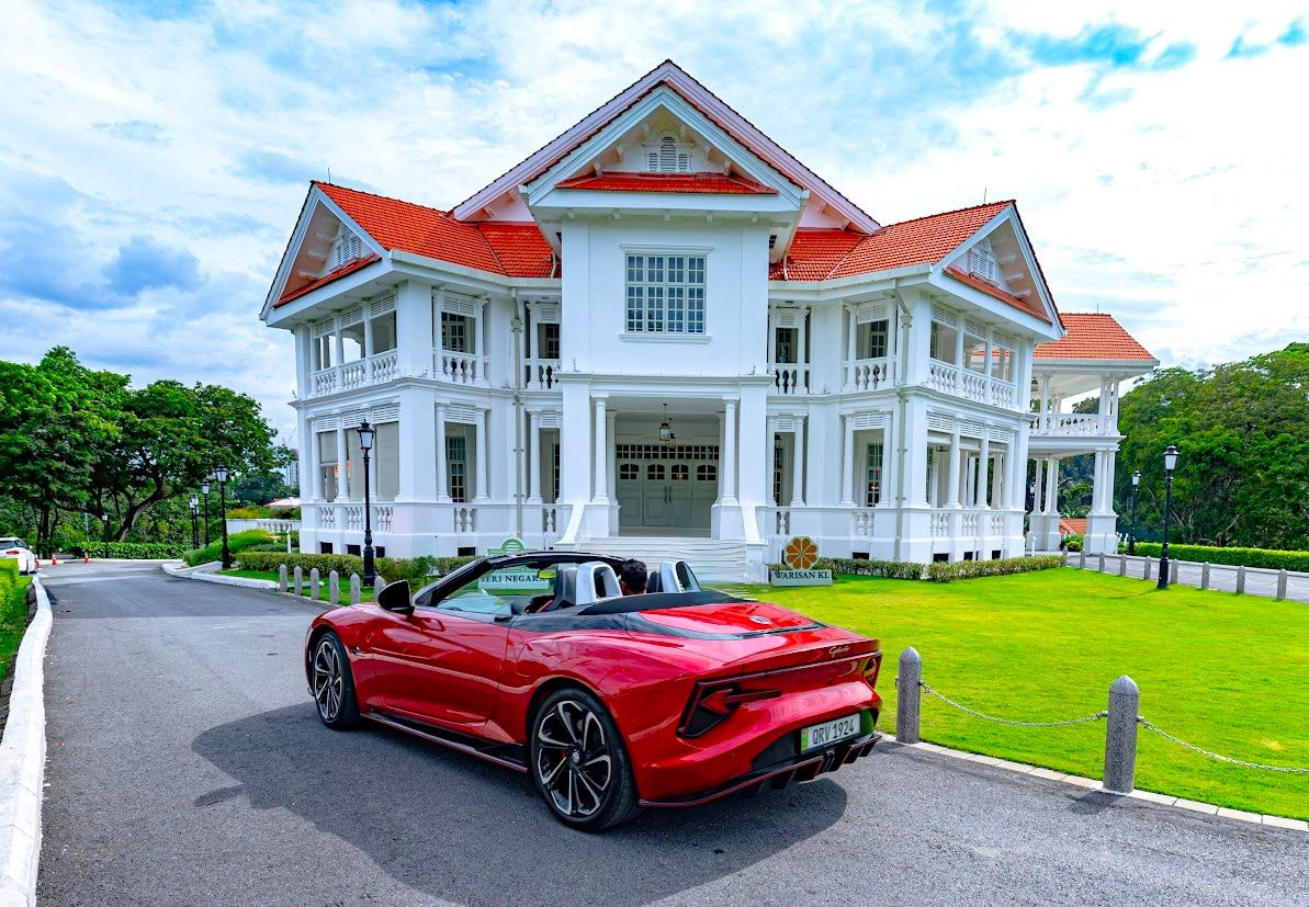 That is perhaps the most disorienting thing about arriving at Seri Negara in the new MG Cyberster. A place accustomed to grand entrances, colonial gravitas, and the unhurried theatre of power. The colonial manor barely flinches at the sound of engines. But when the Cyberster glides up the curved driveway in Dynamic Red, scissor doors raised like a salute, the gardeners stop. A pair of guests on the verandah turn. Someone reaches for a phone. And all of this happens in absolute silence.