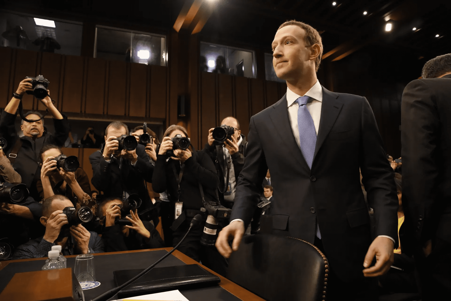 Facebook co-founder and CEO Mark Zuckerberg arrives to testify before a combined Senate Judiciary and Commerce committee hearing on April 10, 2018 in Washington, D.C