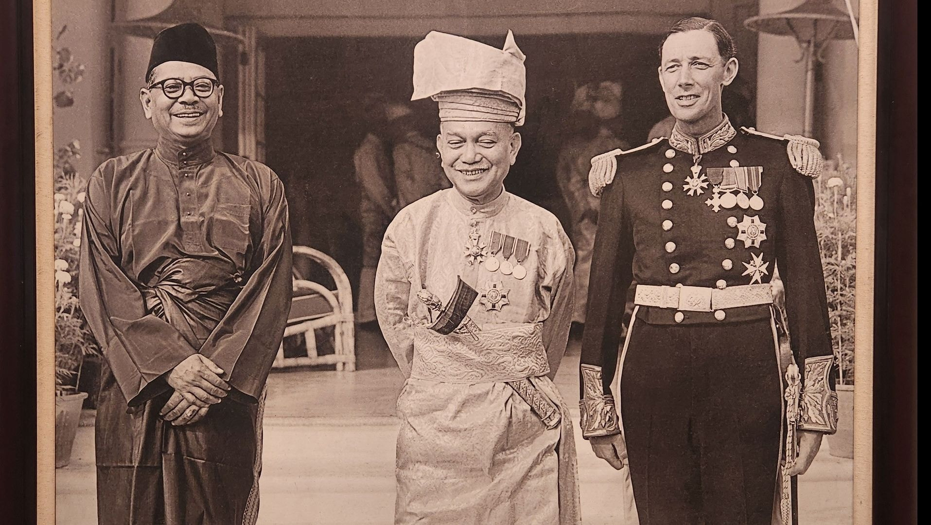 Photo: Tunku Abdul Rahman (Soon to be Prime Minister of the Federation of Malaya), Tuanku Abdul Rahman (The Yang Dipertuan besar of Negeri Sembilan who had been elected as the first Yang Dipertuan Agong two days prior) and Donald MacGillivray (British High Commissioner) outside The King's House on 5 August 1957. Source: Robert Lim